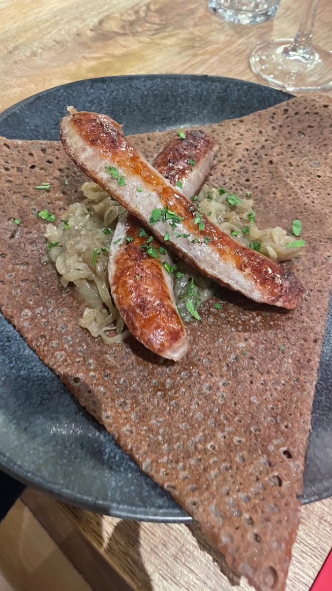 Great place to eat , very friendly staff . Very good service. The crepes were delicious ! Stunning quality of the house red wine ! Something I particularly noticed was the toilets …… a work of art ! Thoroughly enjoyed our visit !