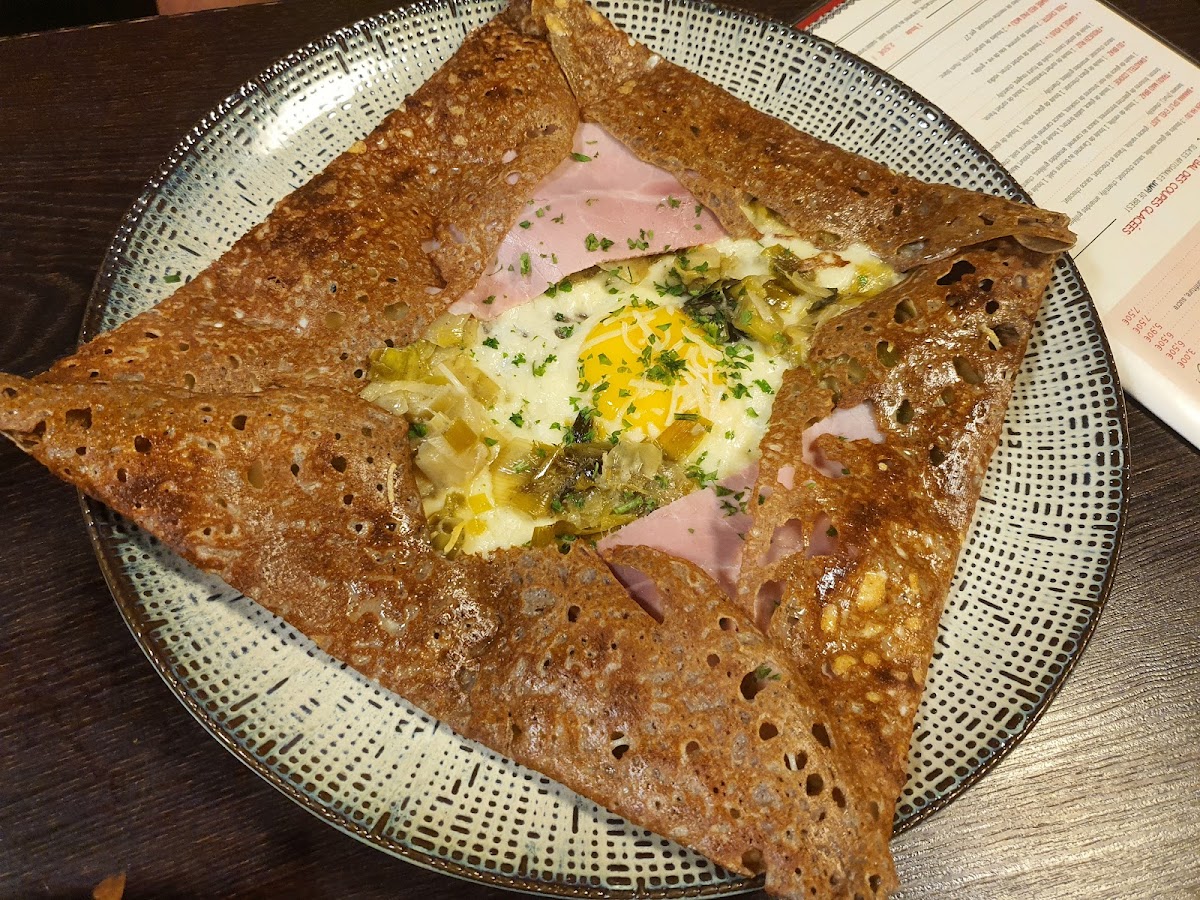 The star of the menu is undoubtedly their galettes, each crafted with precision and brimming with local flavors. Rucksack Foodie describes them as “the most delicious” in all of Brittany, and it’s easy to see why. These savory buckwheat crepes serve as a canvas for an array of fillings, letting the fresh, local ingredients shine. Pair your meal with a selection of ciders and beers, showcasing the best of Breton brews, enhancing your culinary experience.